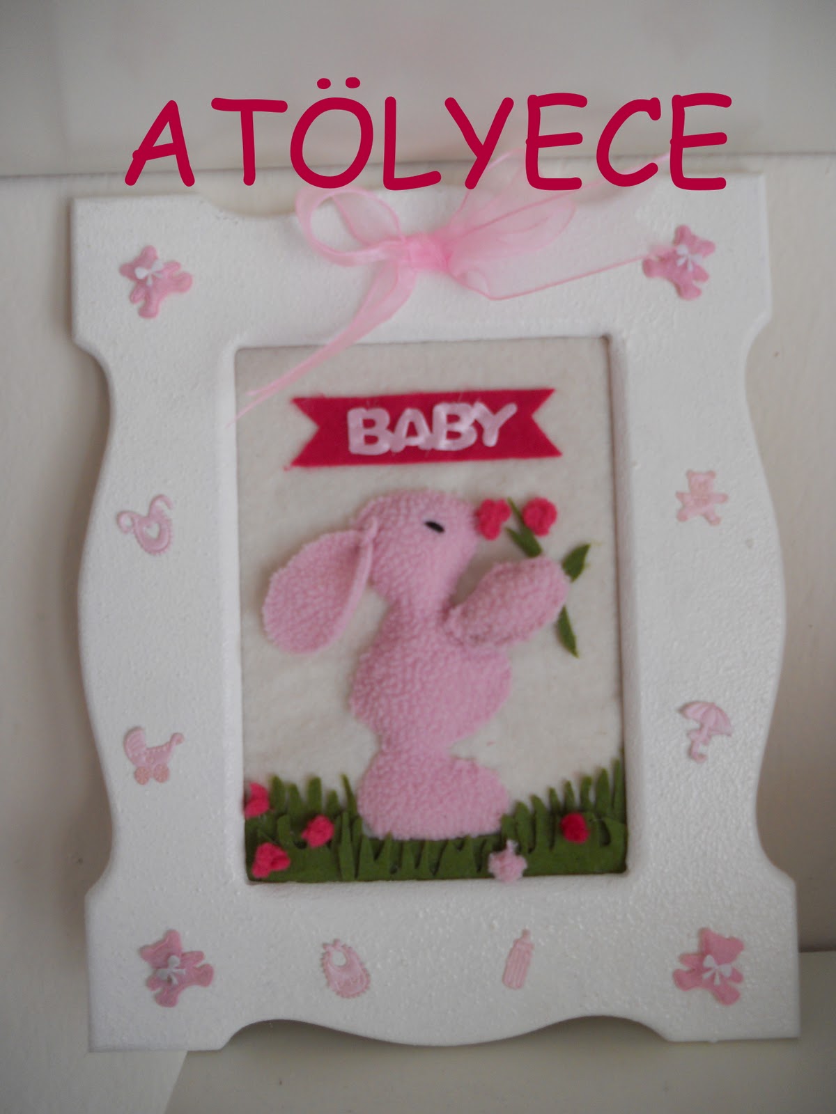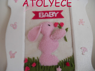 Daha önce yaptığım pembe tavşancıktan consept yaptım. Oyuncağı, panosu, yastığıyla odada bir bütünlük yaratacak.